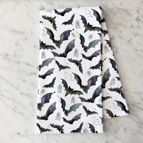 Black and White Halloween Bats & Ghosts Tea Towel - KelseyMDesigns