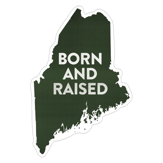True Mainers are both born AND raised in Maine and now you have a sticker to show your Maine pride! These vinyl stickers feature the state of Maine in dark green with the saying, 'Born and Raised,' in a white font. The stickers have a hint of fading to create the ultimate worn-in look.