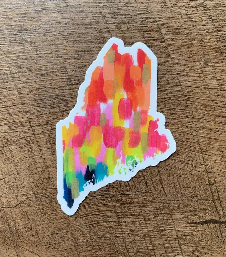 A Maine pride rainbow vinyl sticker. The sticker was created from an original painting. Place this little cutie on your favorite water bottle, travel mug, cooler, laptop or car!