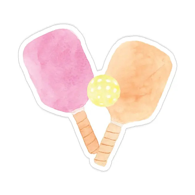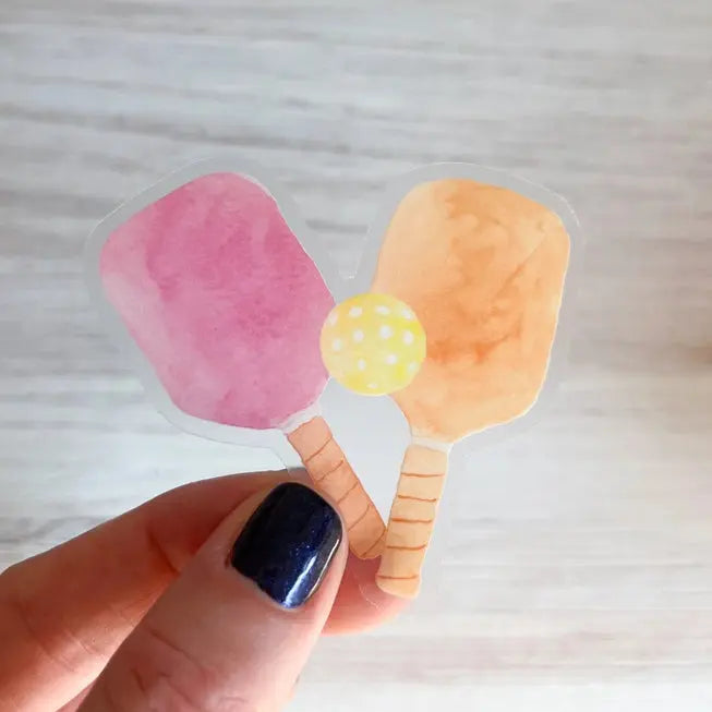 Show your love for pickleball with this cute, clear sticker featuring two pickleball paddles and a pickleball! Created from an original watercolor painting. Please note: Stickers come with a white backing and will not appear clear until removed from the backing.