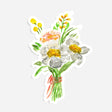 This flower bouquet vinyl sticker features an original watercolor illustration of a stunning bouquet made up of white, pink, and yellow flowers, elegantly tied with a soft pink ribbon. The delicate and vibrant design is perfect for customers who love floral arrangements, nature-inspired art, or adding a touch of beauty and charm to their belongings. Whether for spring, birthdays, or just because, this sticker adds a fresh, floral touch wherever it’s placed.