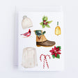 Cozy winter and holiday vibes. This card includes 8 of the artist's watercolor illustrations celebrating the holidays - holly, a vibrant cardinals, the classic winter boot, and a cozy pom pom hat and Irish Knit sweater. Let someone know how much they mean to you with these cards. Blank inside to write your own message.