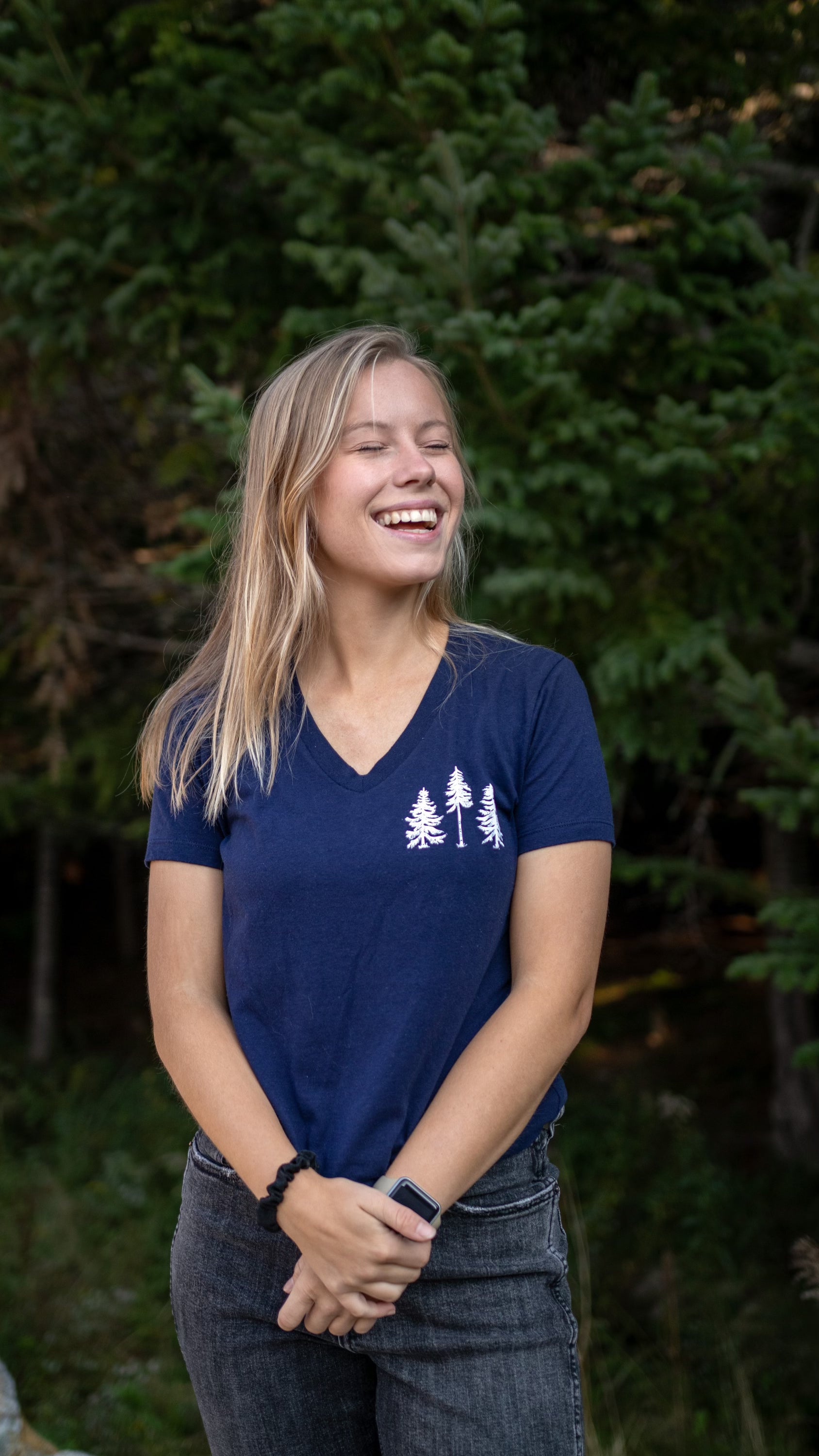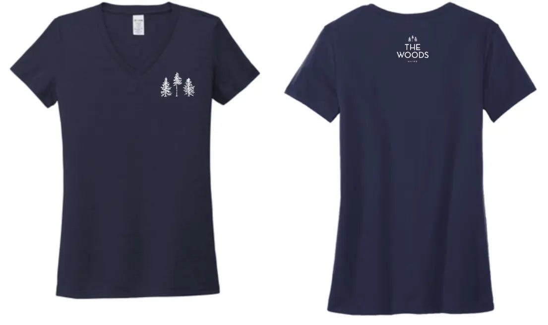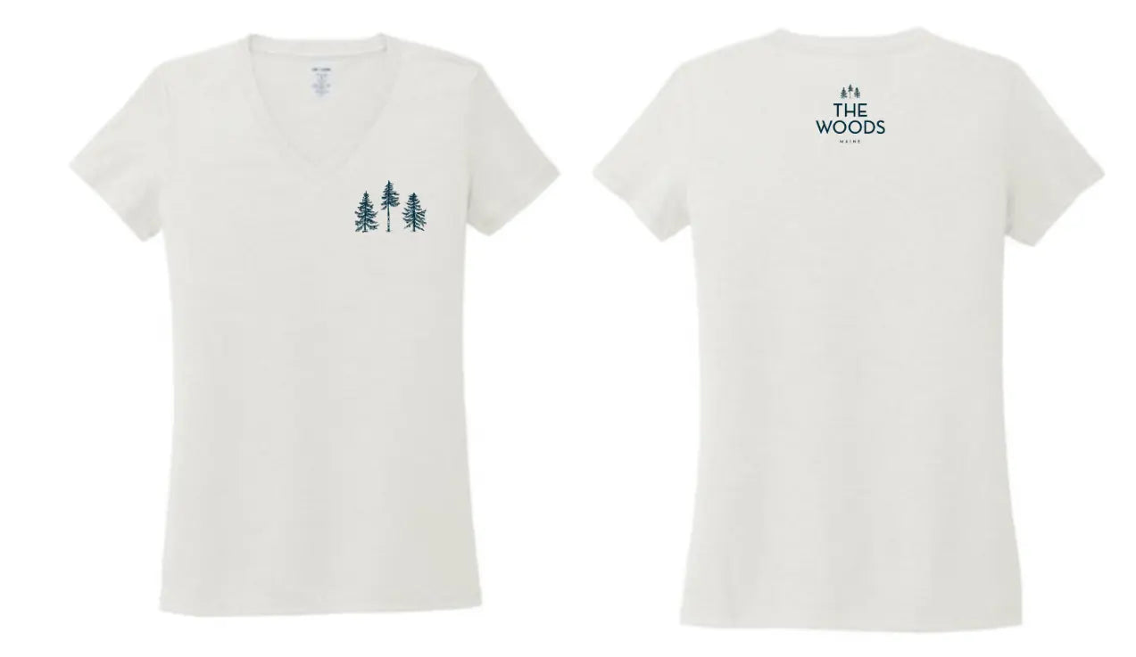 Ladies, this is the one you’ve been waiting for! Our crazy-soft signature tee now comes in an ultra-flattering V-neck. Best of all? It’s eco-friendly, with each one crafted from up to 6 recycled plastic bottles – so you can feel better than ever when you Wear the Woods™. Features our signature Three Pines® brandmark on the front and The Woods Maine® brandmark on the back.