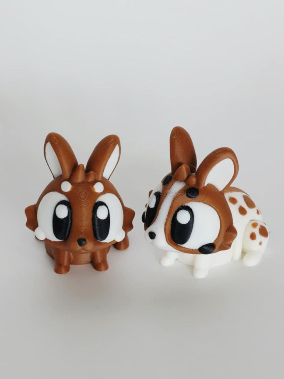 Each toy is made from a "corn material" used in 3D printing, Polylactic Acid (PLA). PLA is a biodegradable plastic derived from corn or other plant-based materials like sugar cane. PLA is a popular choice for 3D printing due to its ease of use, relatively low printing temperature, and biodegradability.