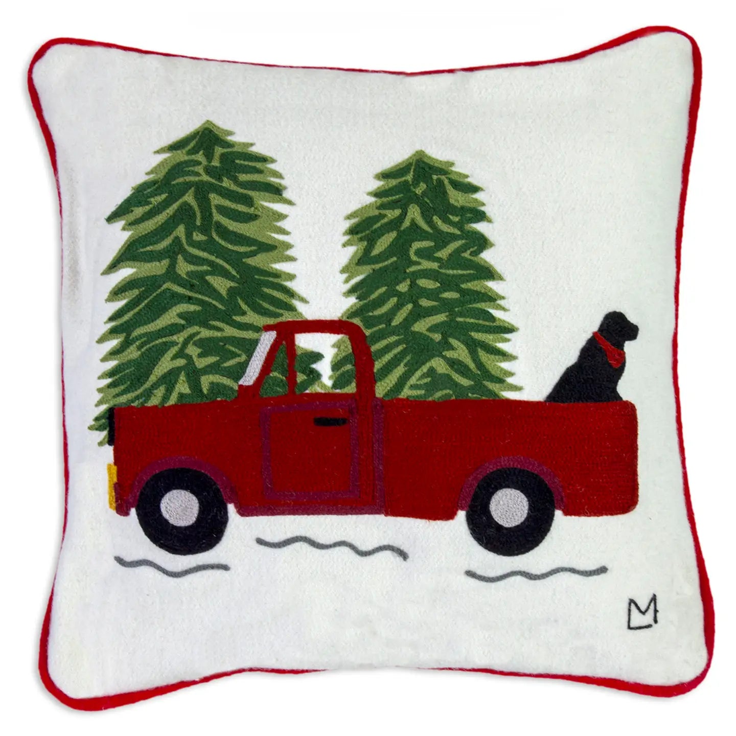 Holiday Red Truck and Dog 18 x 18 Pillow - Chandler 4 Corners