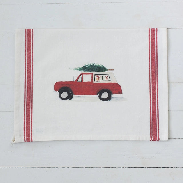Red Truck and Tree Holiday Tea Towel - Finding Silver Pennies