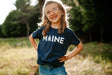 Meticulously crafted with the utmost care and high-quality materials, this T-shirt offers unparalleled comfort and durability for your active toddlers. Let them embrace the charm of Maine and showcase their love for this remarkable destination with our 'My Maine' youth short sleeve tee. Shop now and let your kids experience the perfect blend of style and comfort with The Woods Maine.