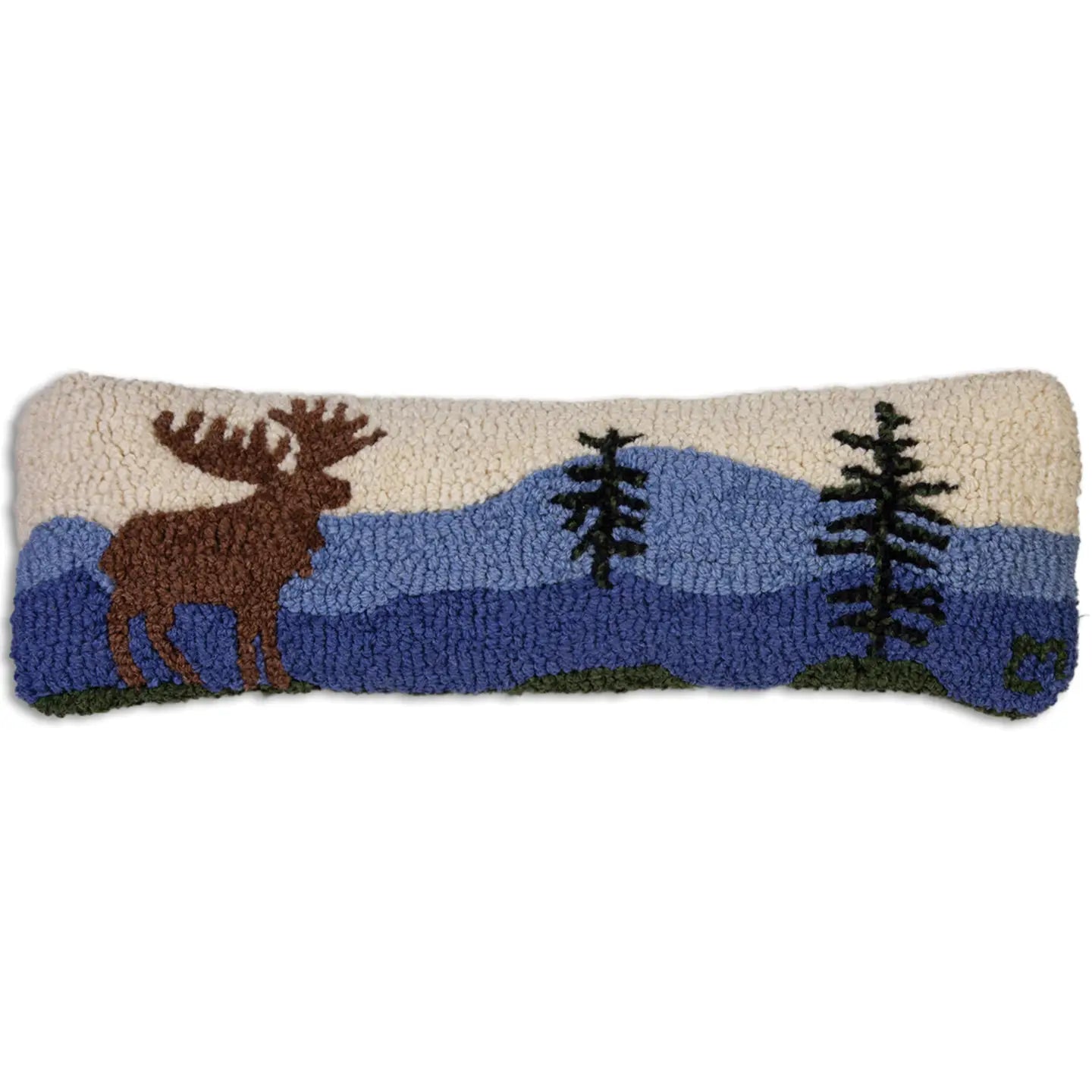 Moose and Mountains 8 x 24 Hand-Hooked Wool Pillow - Chandler 4 Corners