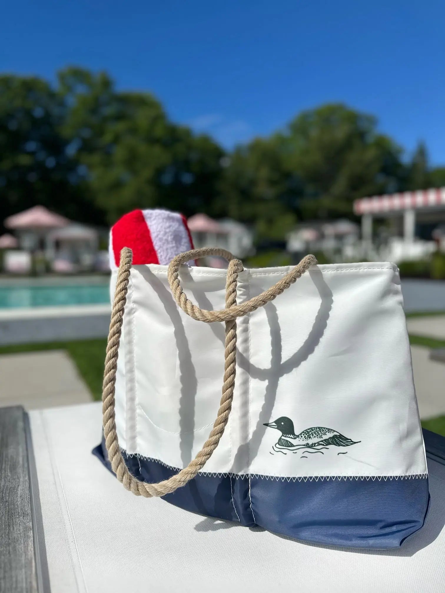The Woods Maine Three Pines®: Loon Large Carry-All Tote | MADE IN MAINE is backordered and will ship as soon as it is back in stock.