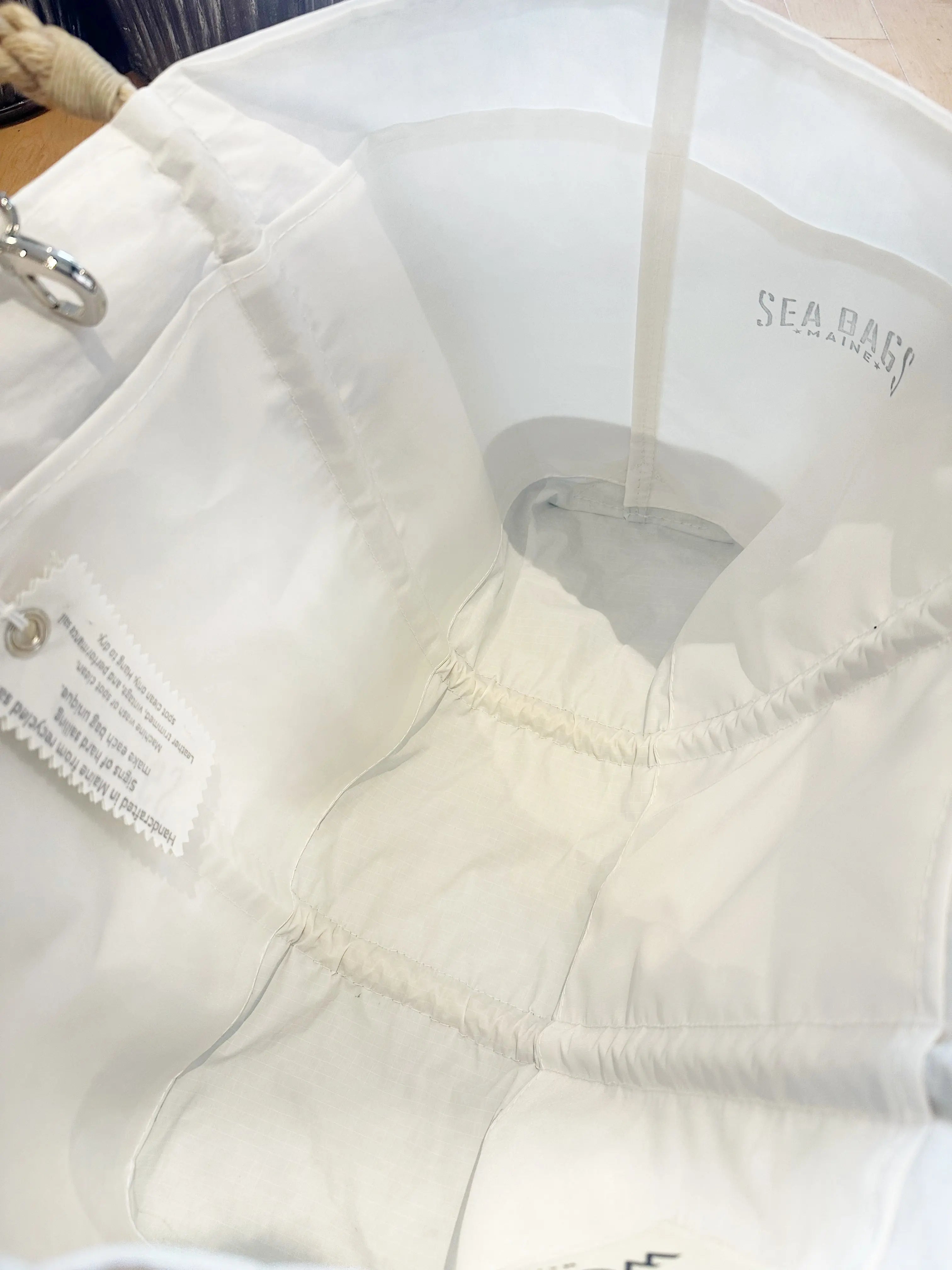 Celebrate the spirit of Maine, From The Seas To The Trees. Introducing the Three Pines: Loon Large Carry-All Tote. Designed in Norway, Maine and handcrafted in Portland by Sea Bags for The Woods Maine®. This roomy tote includes six large interior pockets. Ready to haul everything to your next football gathering, picnic, beach day or boat day. Rugged recycled sailcloth resists wear and water so don’t hesitate to fill it to the brim and glide into your next adventure.