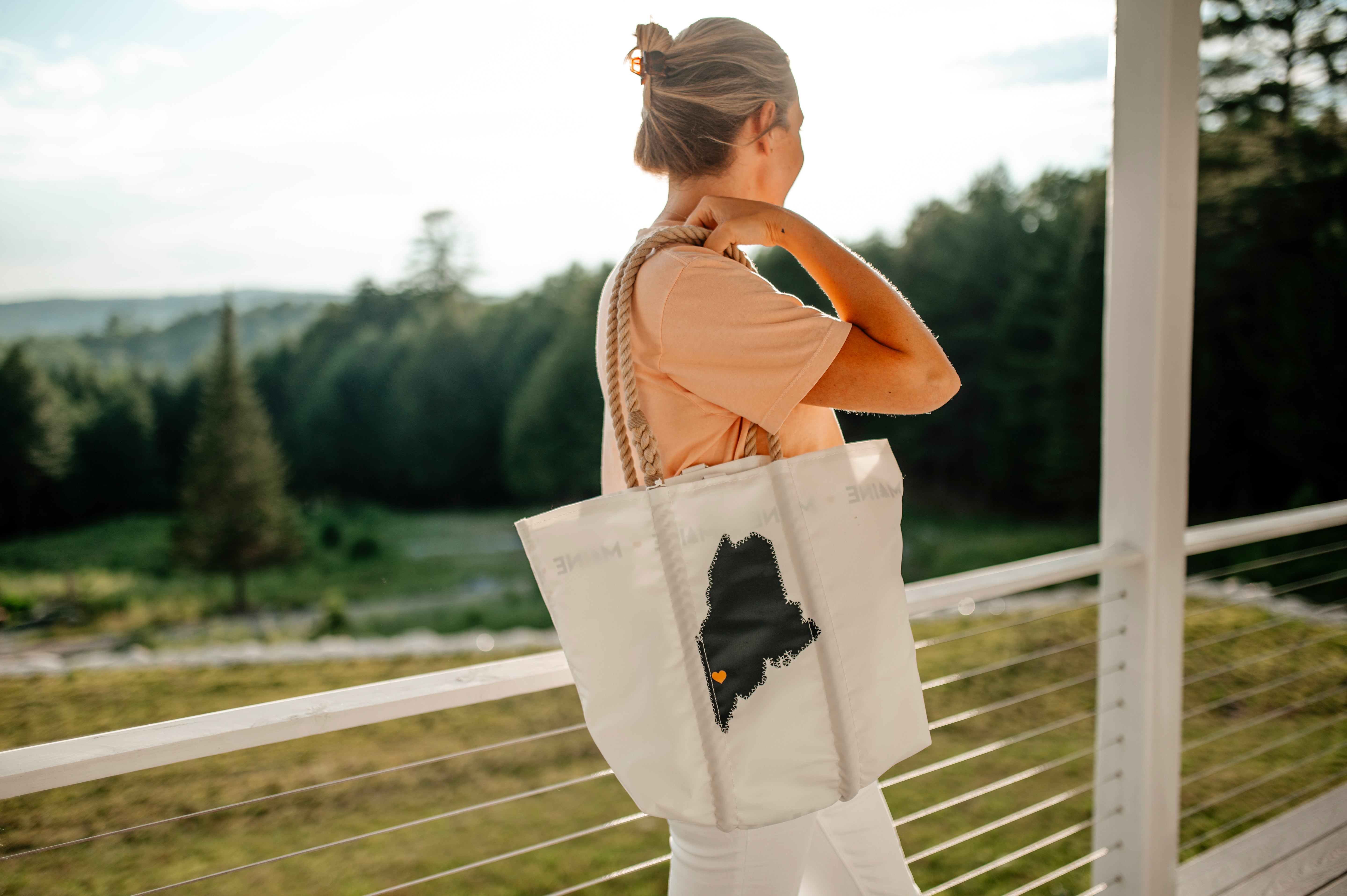 Carry a piece of Maine wherever you go with the Heart of Maine Lined Medium Tote, a brand new offering from our collaboration between The Woods Maine® and Sea Bags®. Handcrafted in Maine from recycled sail cloth, each tote celebrates sustainability, craftsmanship, and hometown pride.