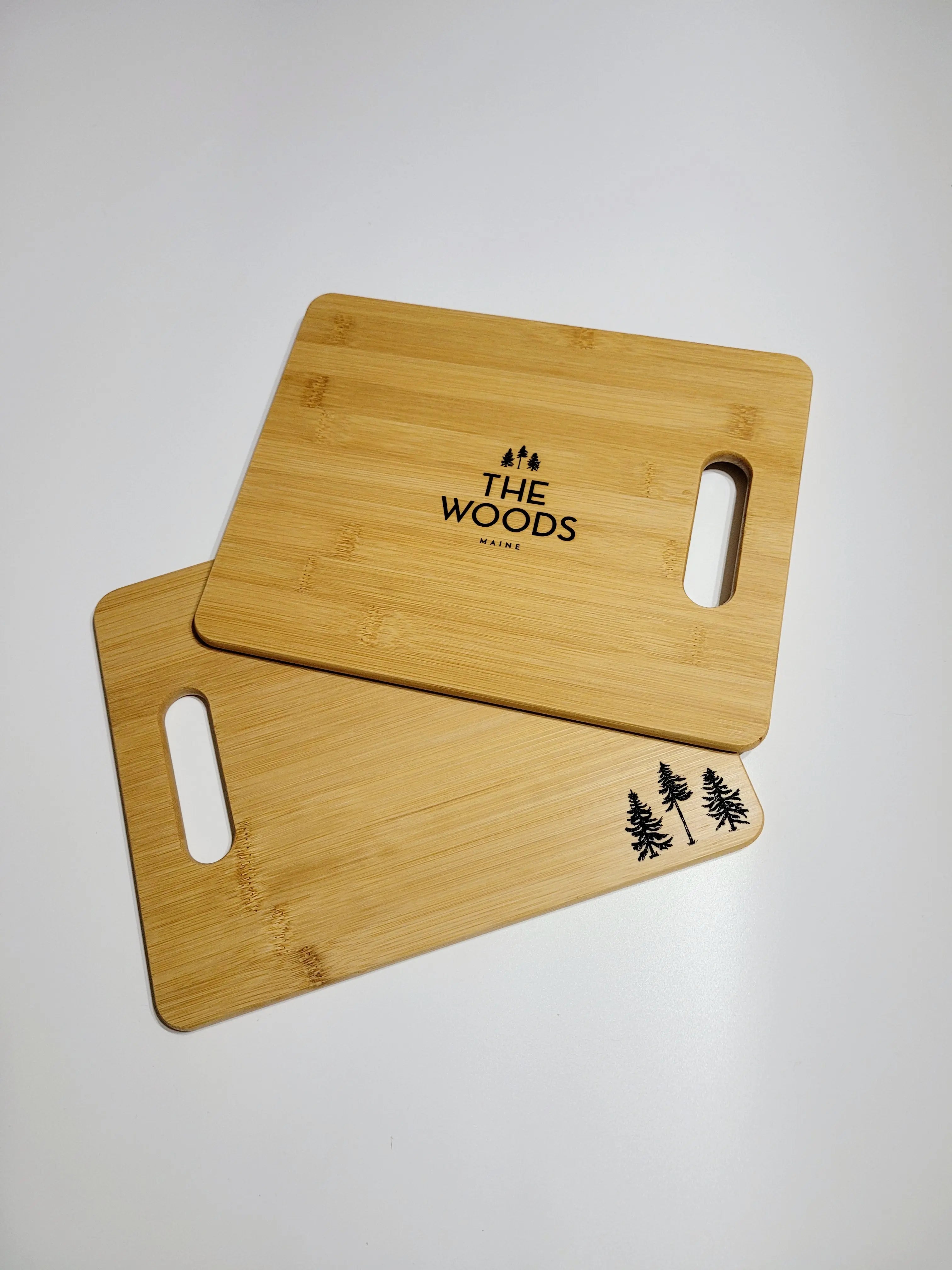 The first from The Woods Maine® and Snowdon Customs collaboration: a locally Maine made bamboo cutting board engraved with The Woods Maine signature Three Pines® brandmark. A signature addition to your kitchen or bar, and a perfect backdrop for your charcuterie board.