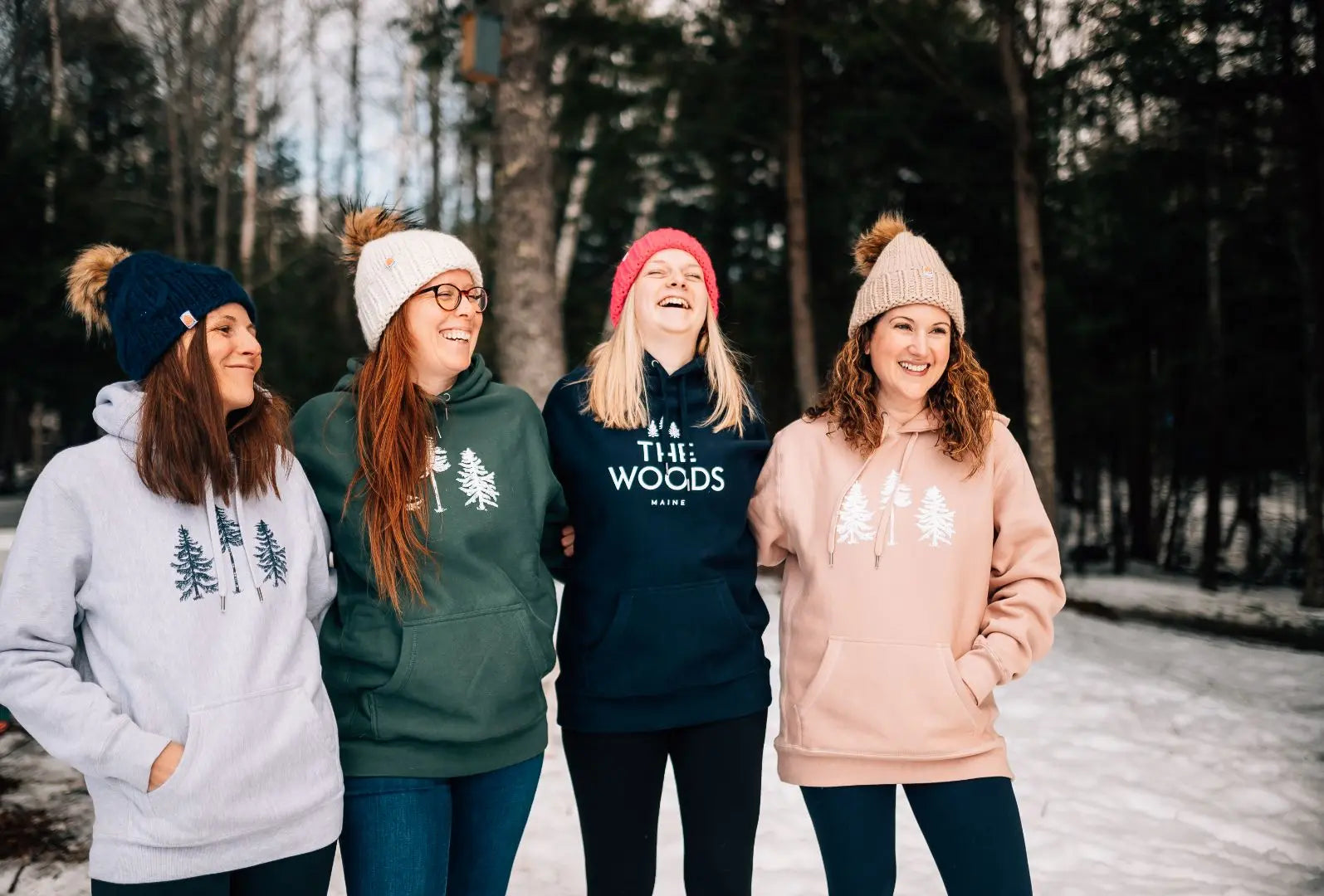 Don't compromise on quality or style - choose The Woods Maine for the warmest and most stylish Maine hoodie and sweatshirt. Shop now from our Three Pines Collection and embrace the coziness of winter with confidence and flair."