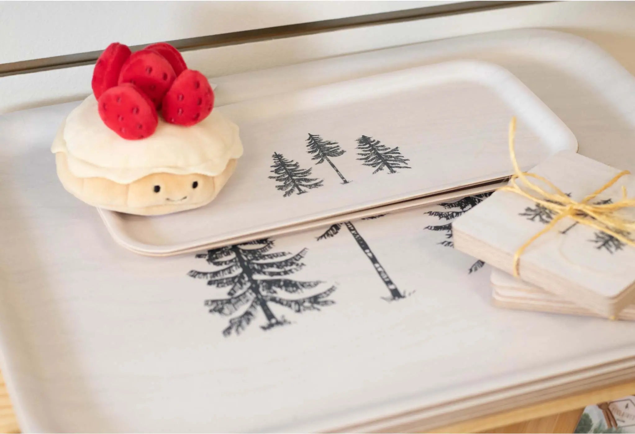 Everything you love about Maine, served up in style. The Woods Maine®’s collection of trays and coasters is beautifully handcrafted in Scandinavia of a birch wood veneer sourced from Certified Sustainable Forests. The wood is sealed with a melamine layer that protects each piece for years to come.