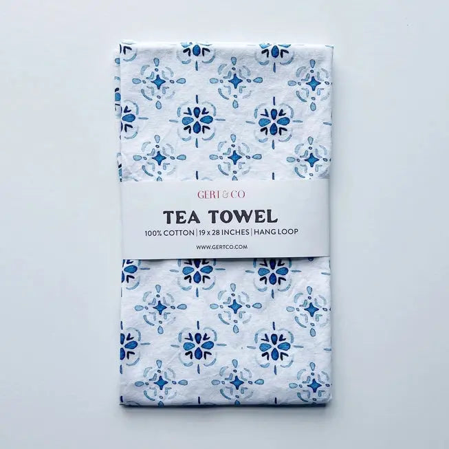 Blue & White Medallion Kitchen Tea Towel - Gert & Co
