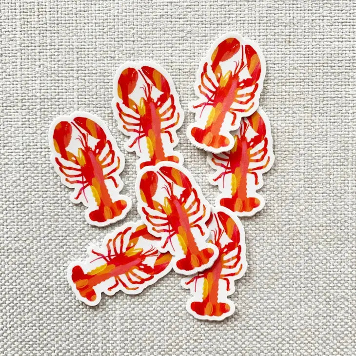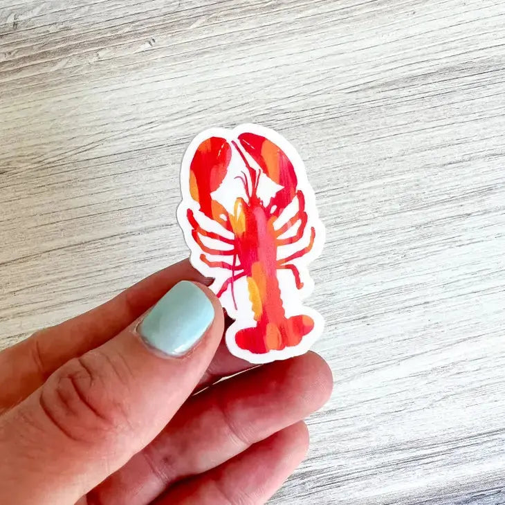 A fun, mini lobster sticker created from an original acrylic painting. It's approximately 2" tall x 1" wide. A great way to show your love of Maine!