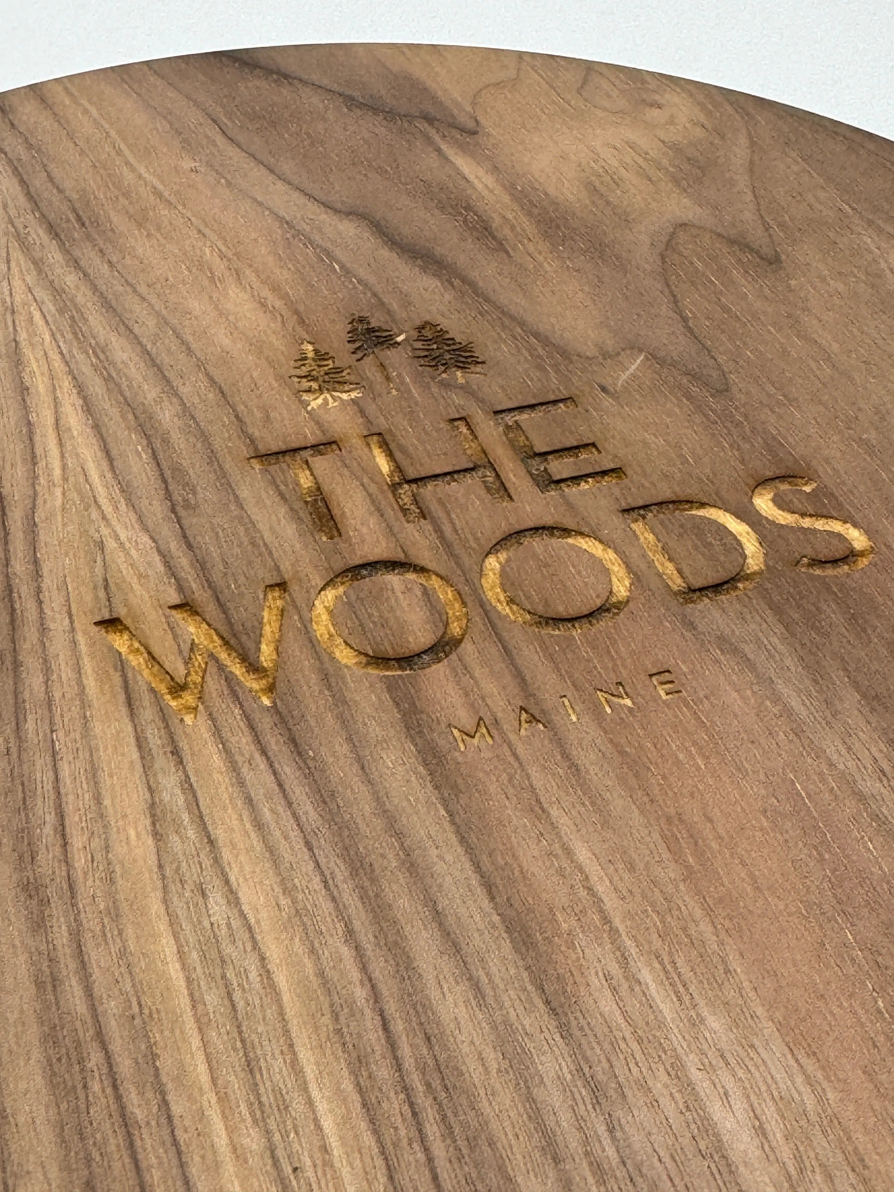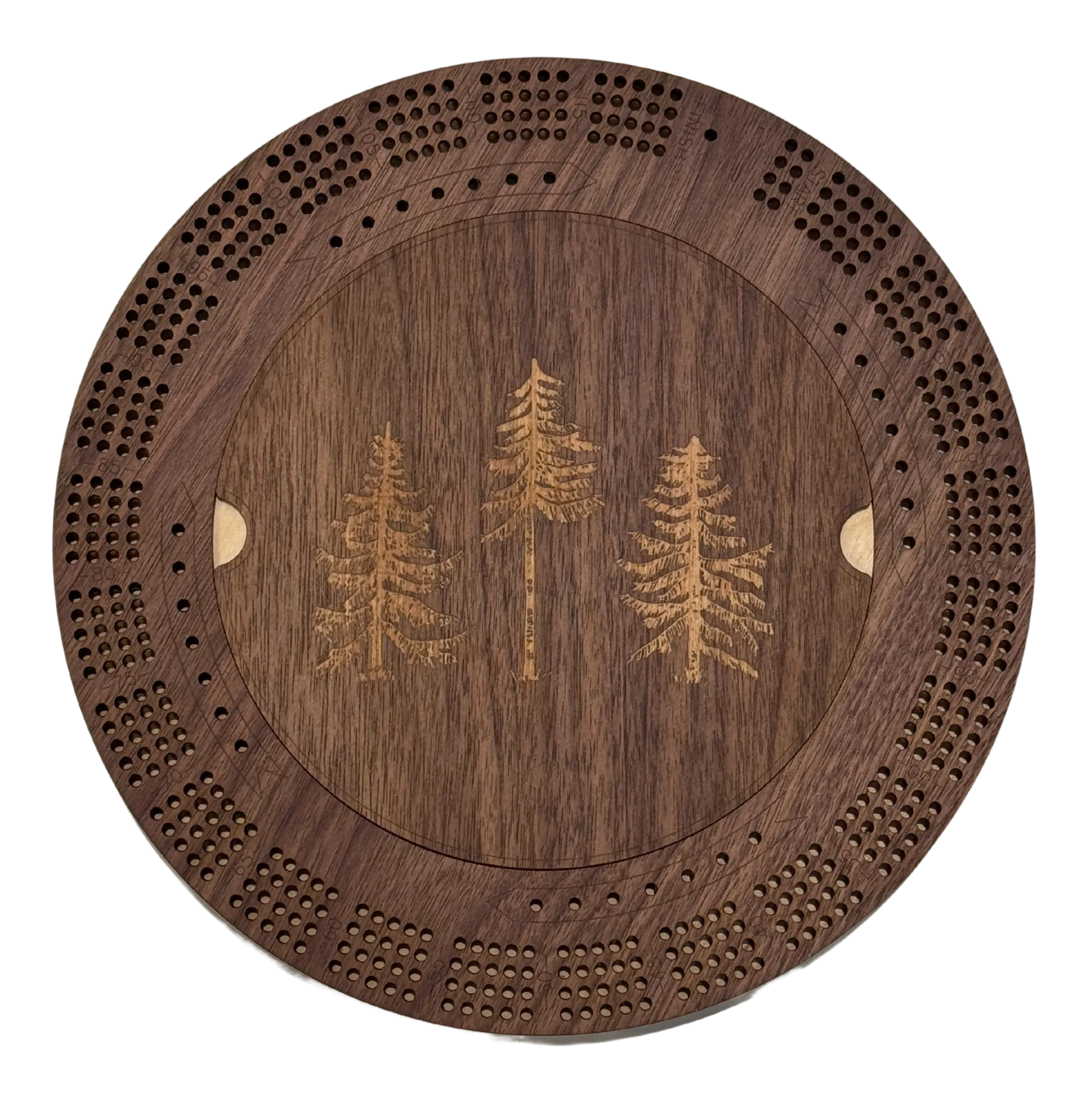 Handcrafted in Maine from premium black walnut and Baltic birch wood, this beautifully designed cribbage board features a sleek, circular shape, offering a fresh take on the classic game. Our distinct Three Pines® brandmark is etched on the front, and The Woods Maine® on the back.