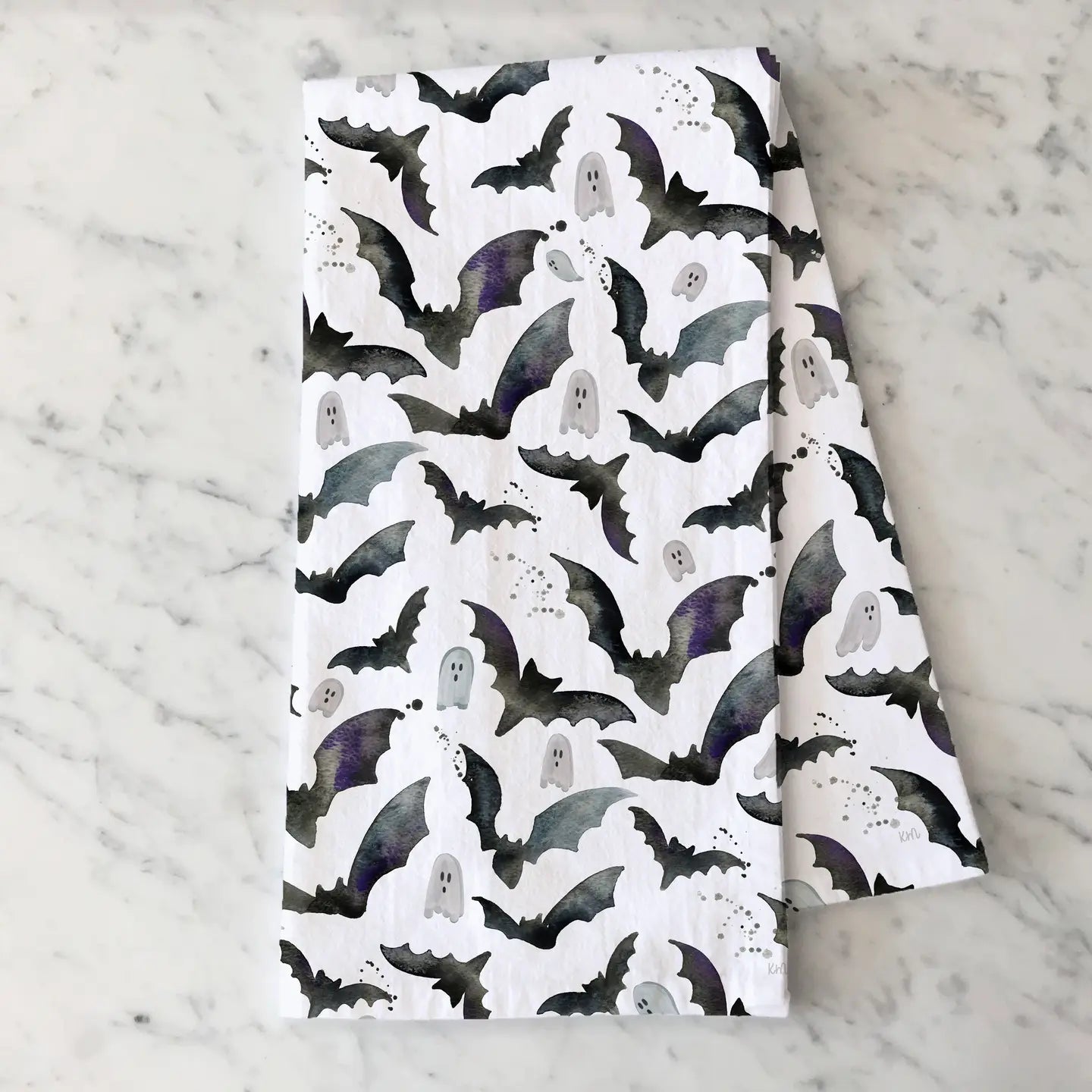 Black and White Halloween Bats & Ghosts Tea Towel - KelseyMDesigns is backordered and will ship as soon as it is back in stock.
