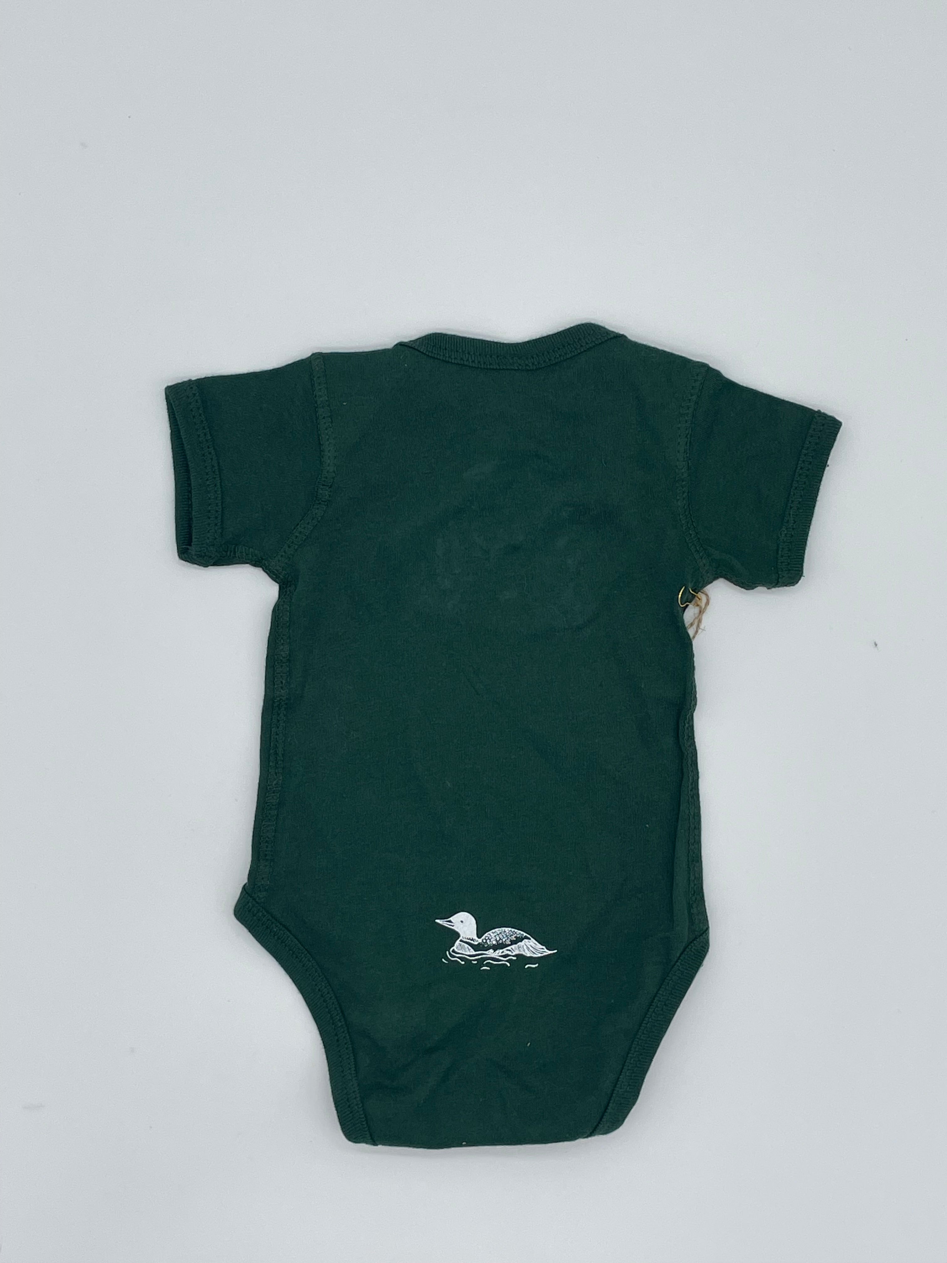 The Loon: Three Pines® Onesie - Newborn is backordered and will ship as soon as it is back in stock.